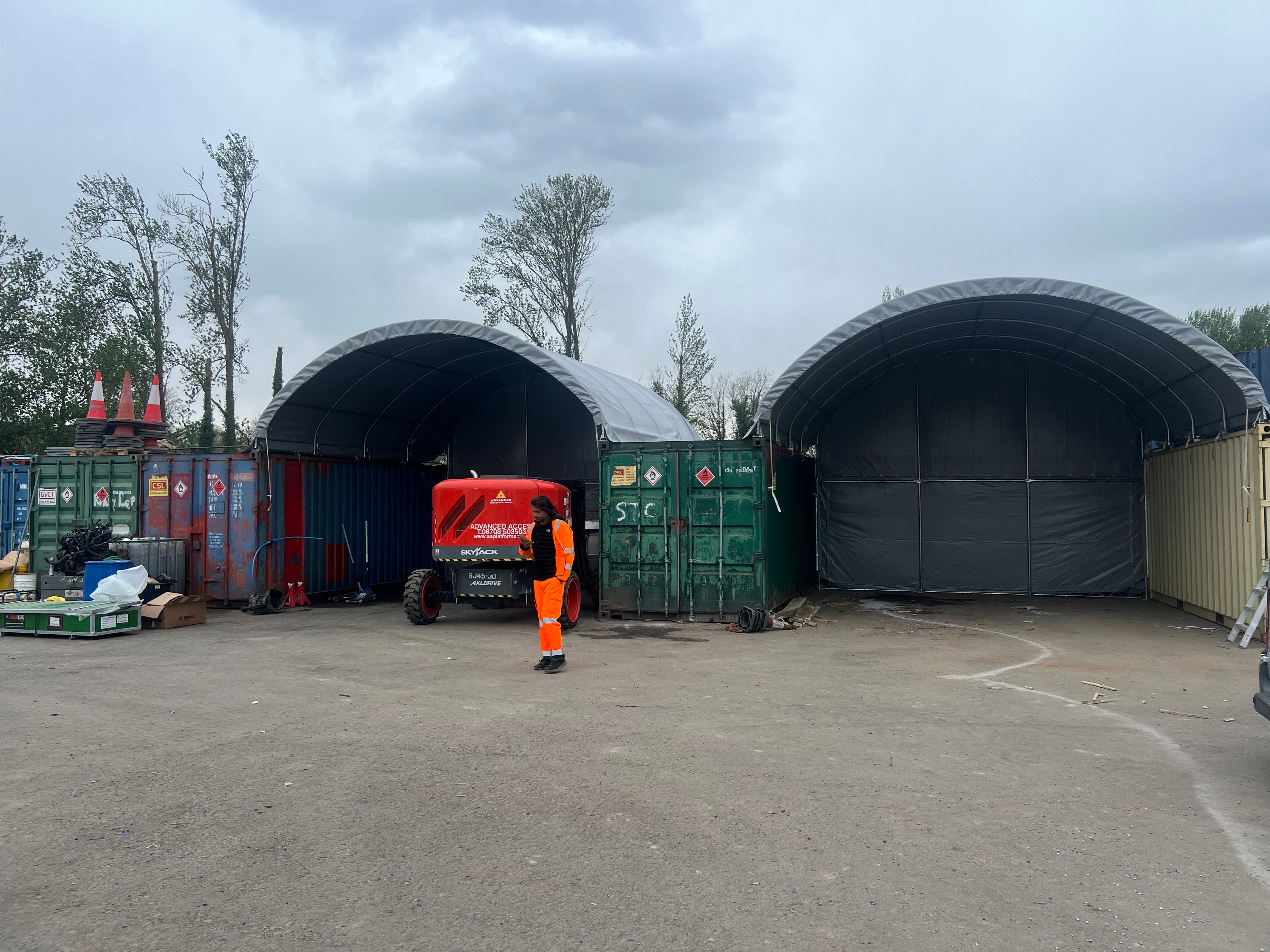 Use SkyShield™ container canopies when you already have ISO containers on site and need rapid, rugged cover with minimal groundworks.